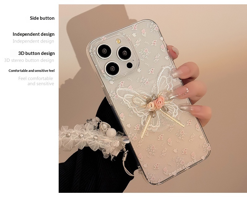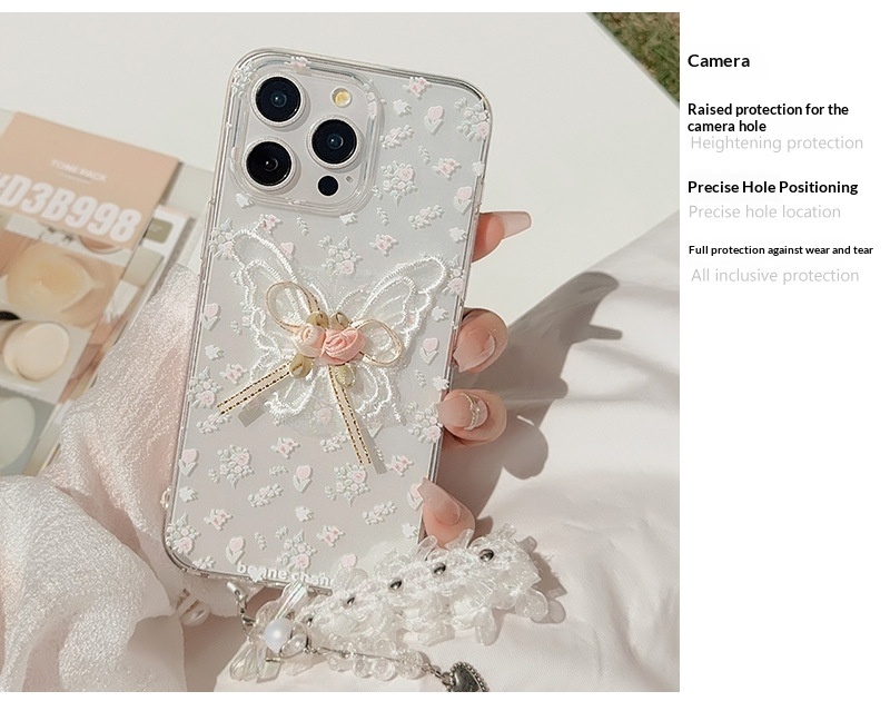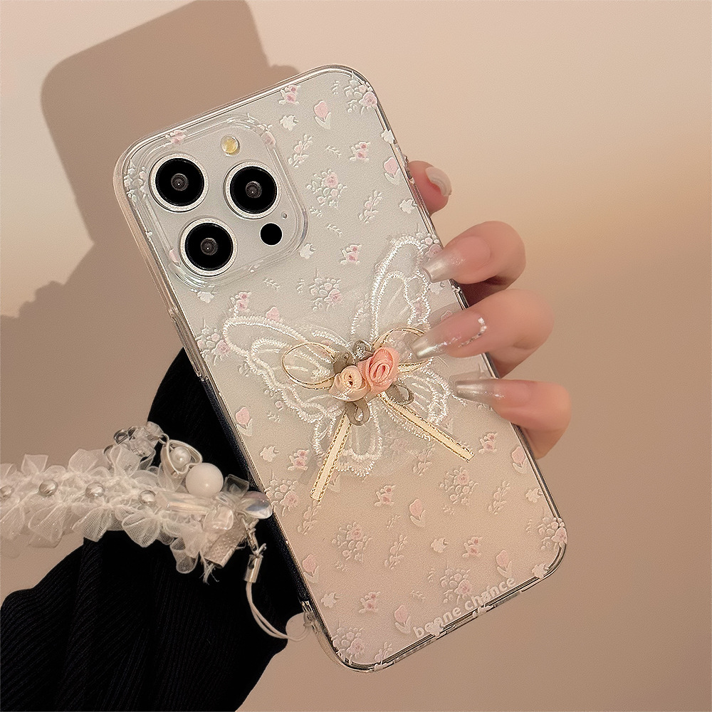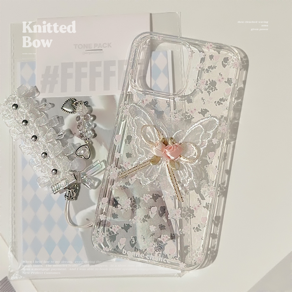 Aesthetic Embroidered Butterfly Flower Phone Case With A Transparent Lace Pendant