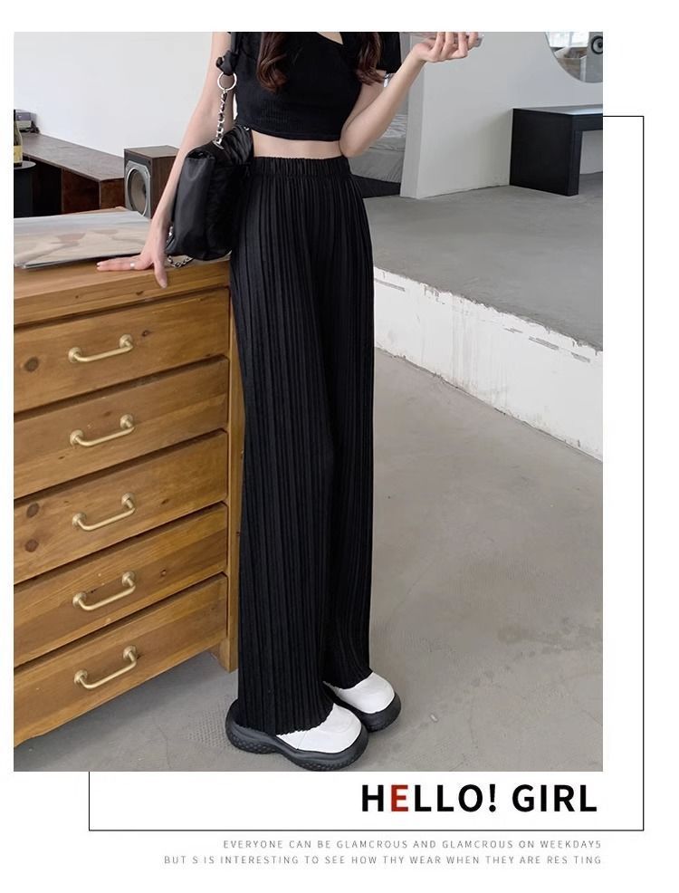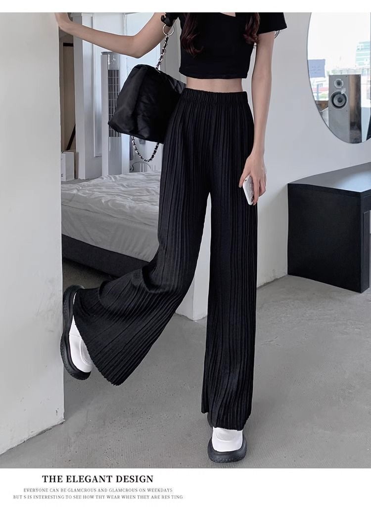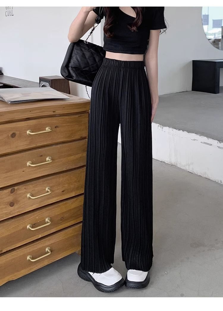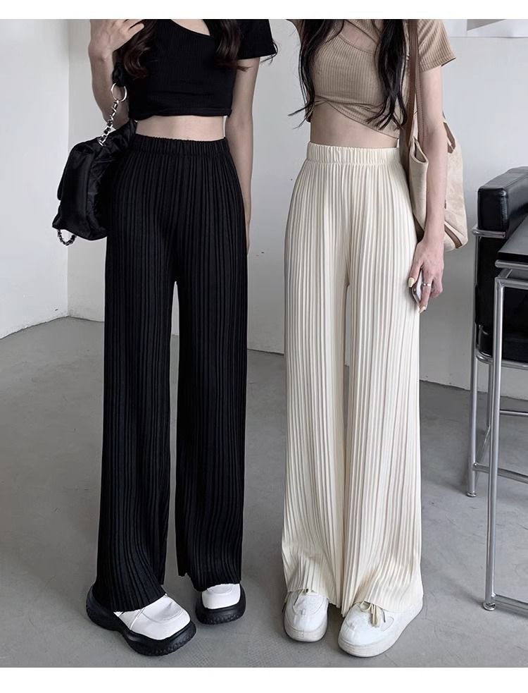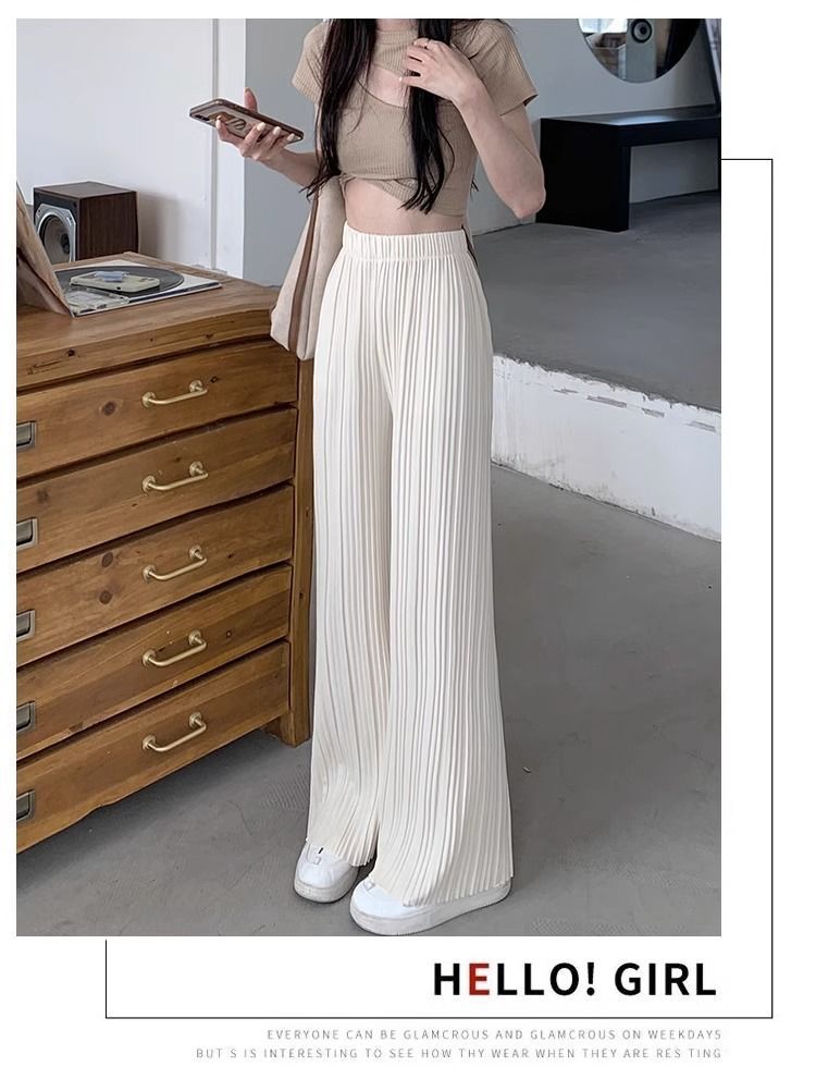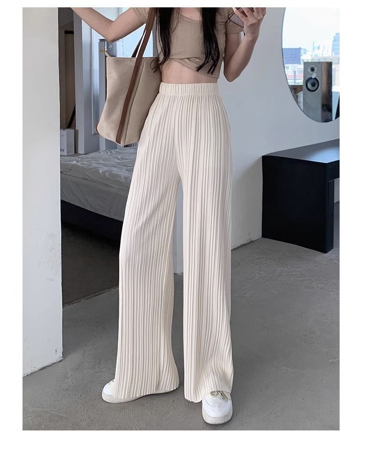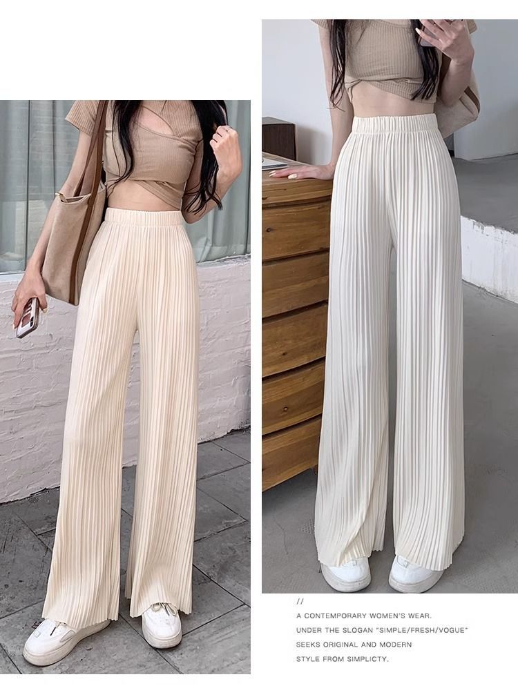 High-waisted Draping Lightweight Pleated Casual Pants