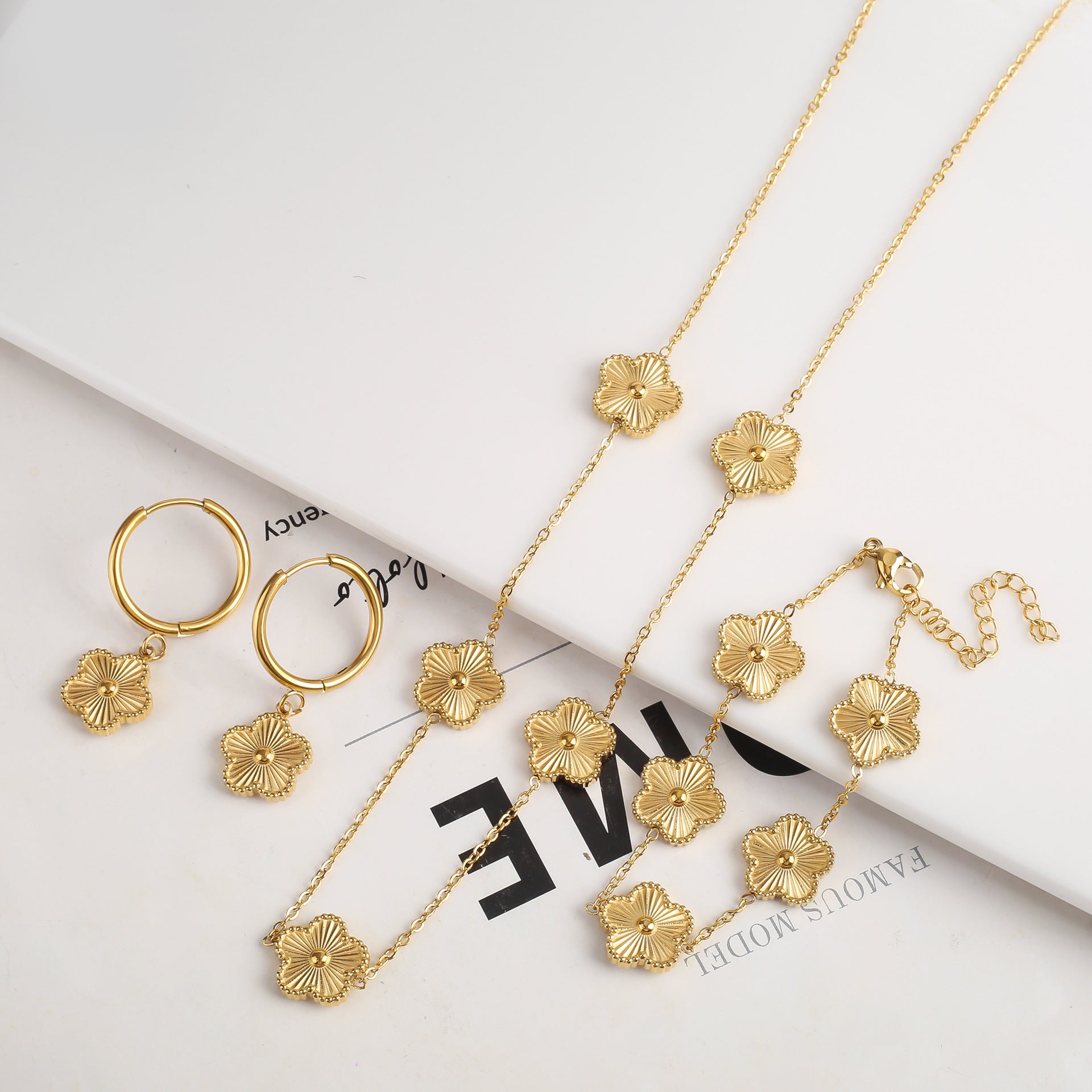 Metal Plum Blossom Sparkling Stainless Steel Electroplated Earrings
